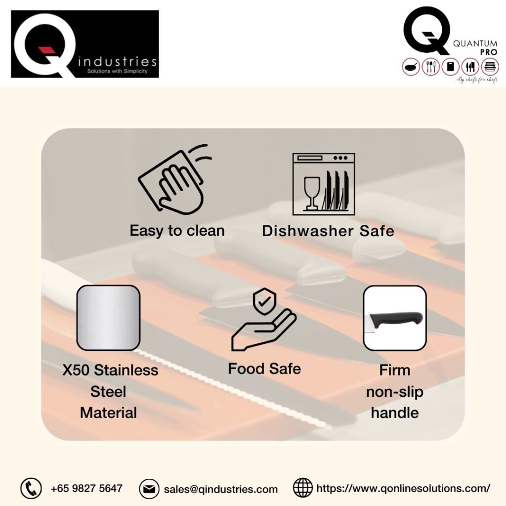 Investing in Quantum Pro knives and cutting boards means equipping your commercial kitchen with tools that combine convenience, safety, and durability. Easy to clean and dishwasher safe, these products are made from high-quality materials that ensure long-lasting performance and food safety. Upgrade your kitchen today with Quantum Pro and elevate your culinary skills to new heights. Your cooking will not only be easier and more enjoyable but also safer and more efficient. Embrace the excellence of Quantum Pro and make every meal a masterpiece.